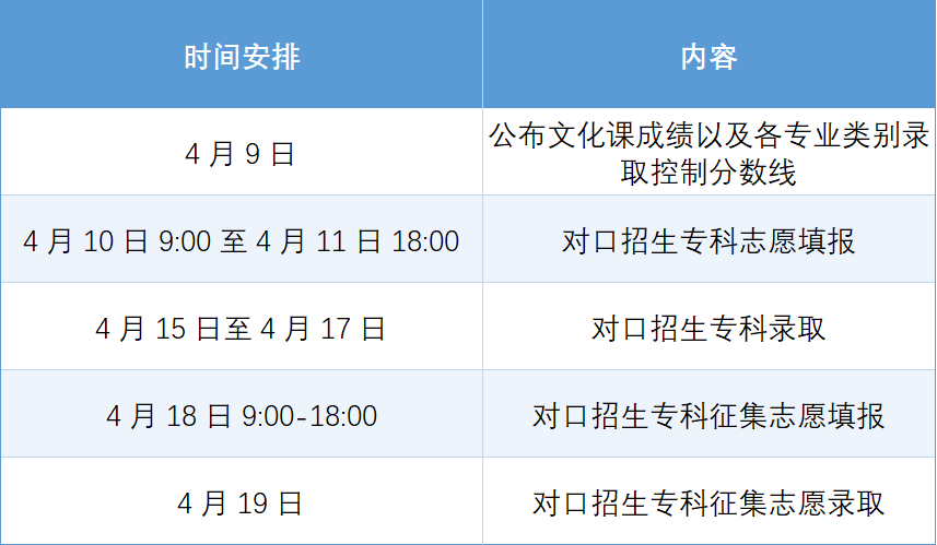 凡对口招生总成绩达到相应专业类别专科控制分数线,目前未被任何院校录取的对口招生考生,均可填报相应专业类别的院校志愿。